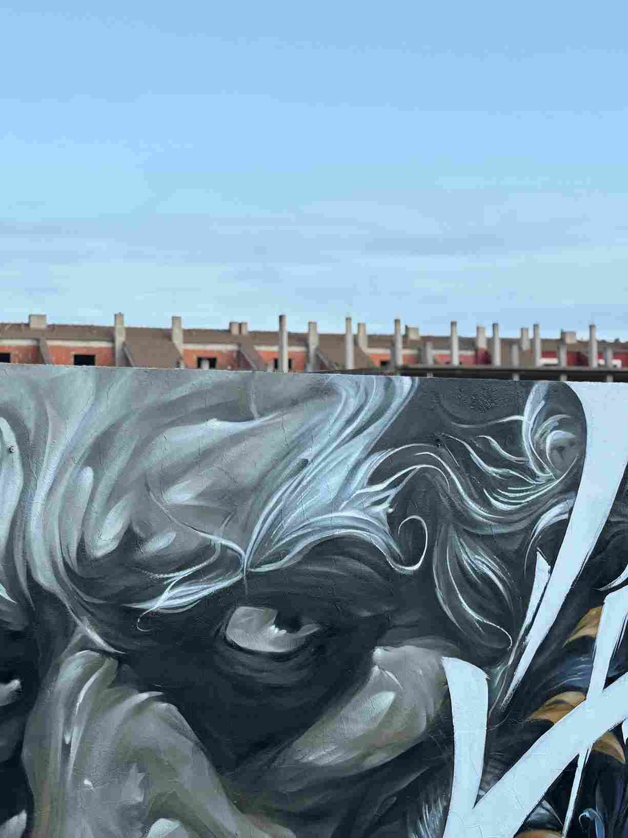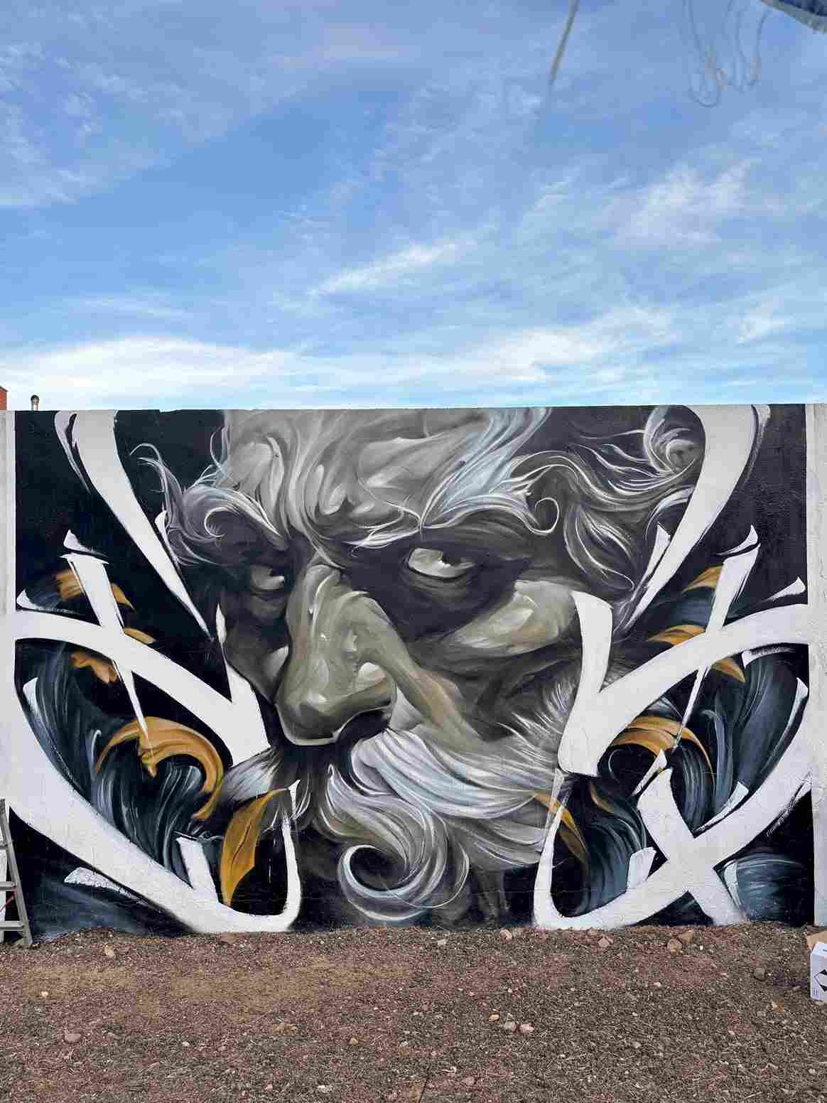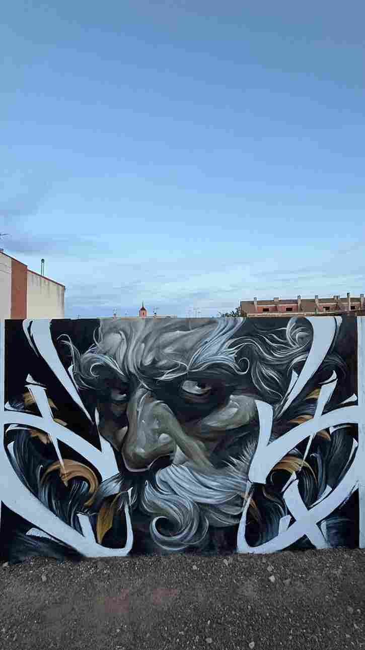Asem Navarro se alzó con el primer premio en el certamen de arte urbano Manchagraff (Malagón) con este mural de graffiti en blanco y negro: un retrato monumental de carácter clásico y fuerza contemporánea. Si buscas un mural profesional para tu ayuntamiento, festival o entidad pública, diseñamos y pintamos proyectos llave en mano: concepto, permisos, producción y seguridad.