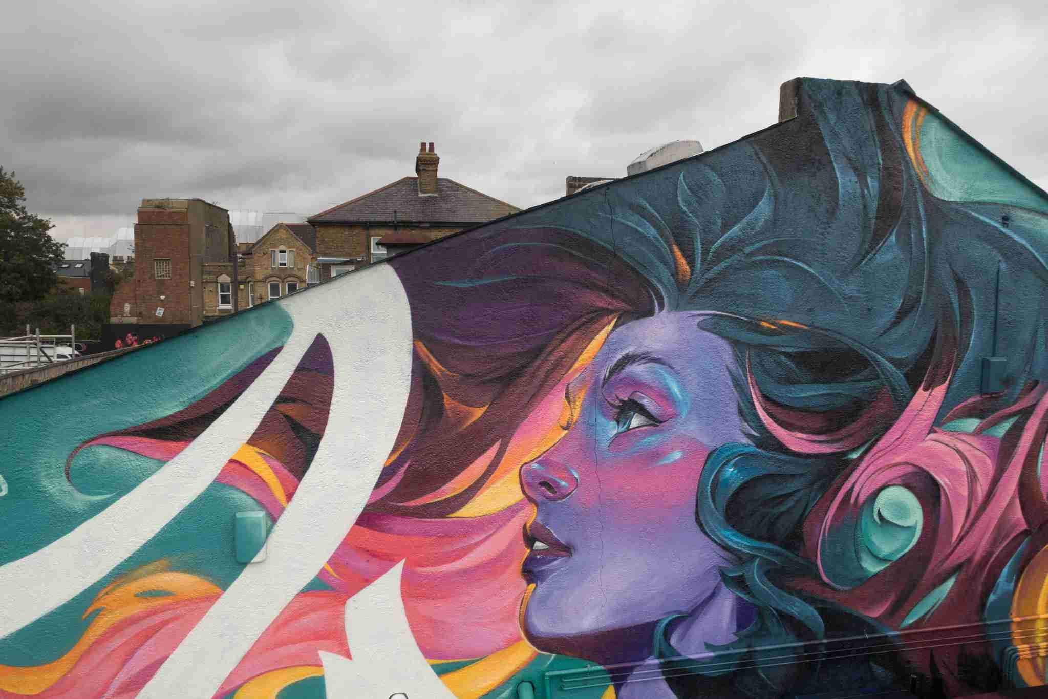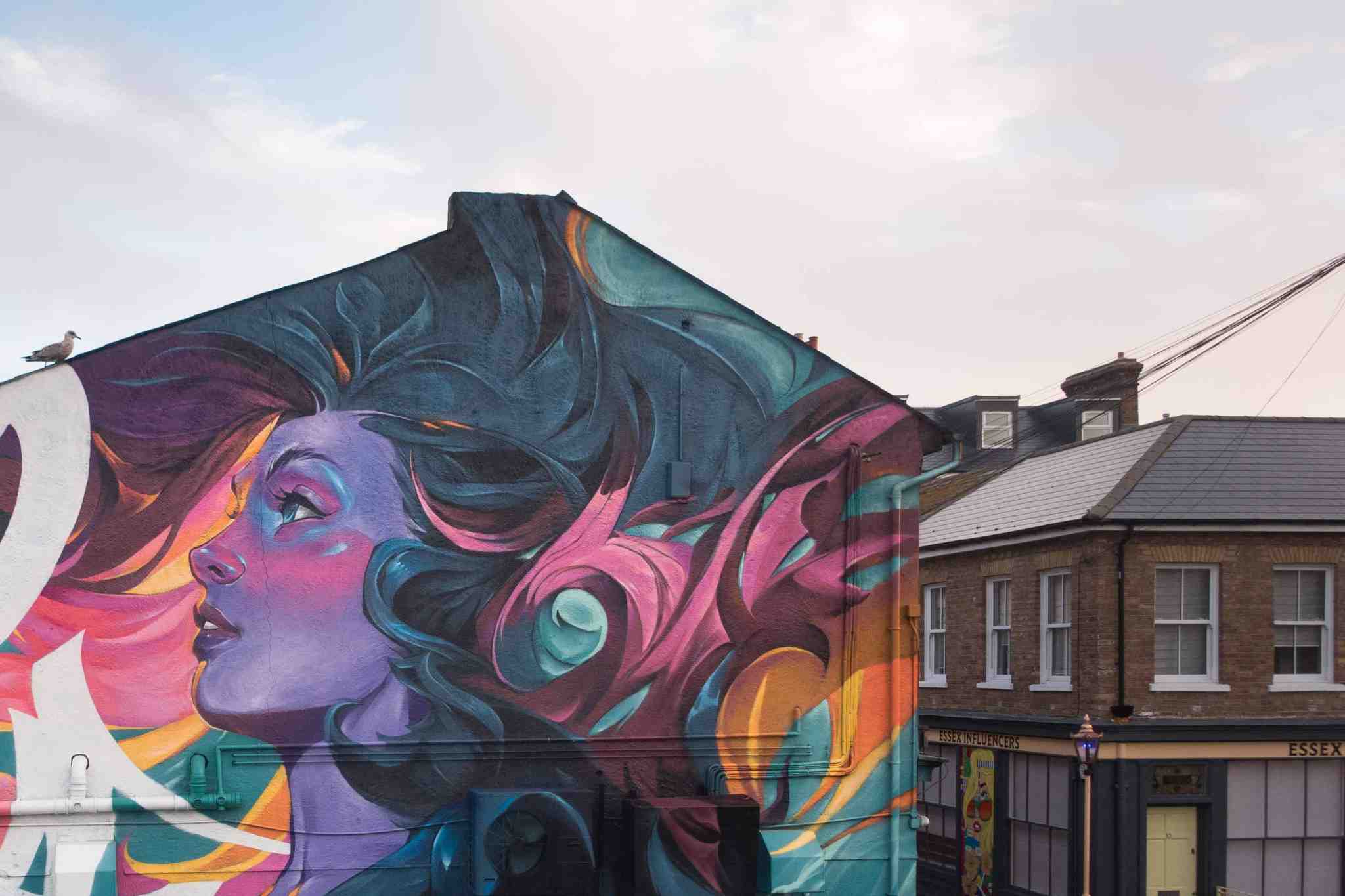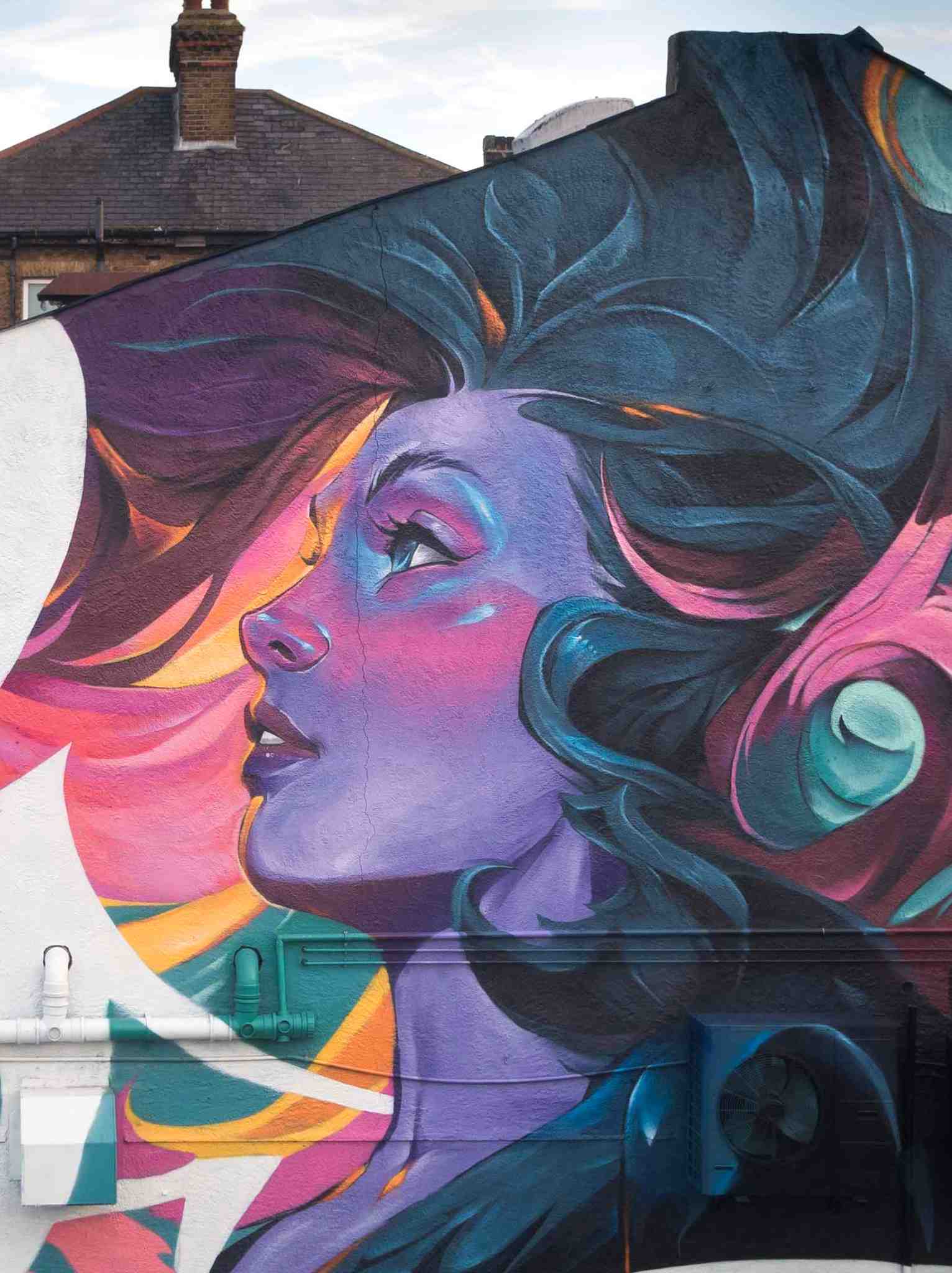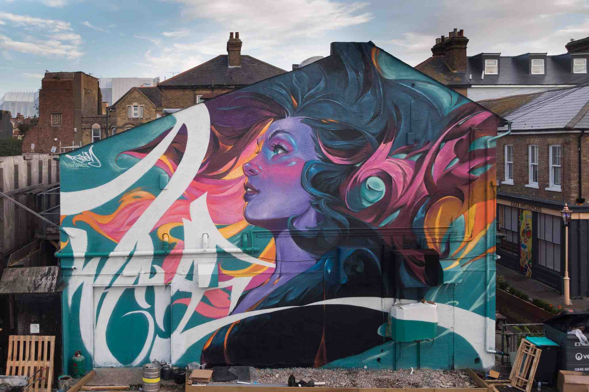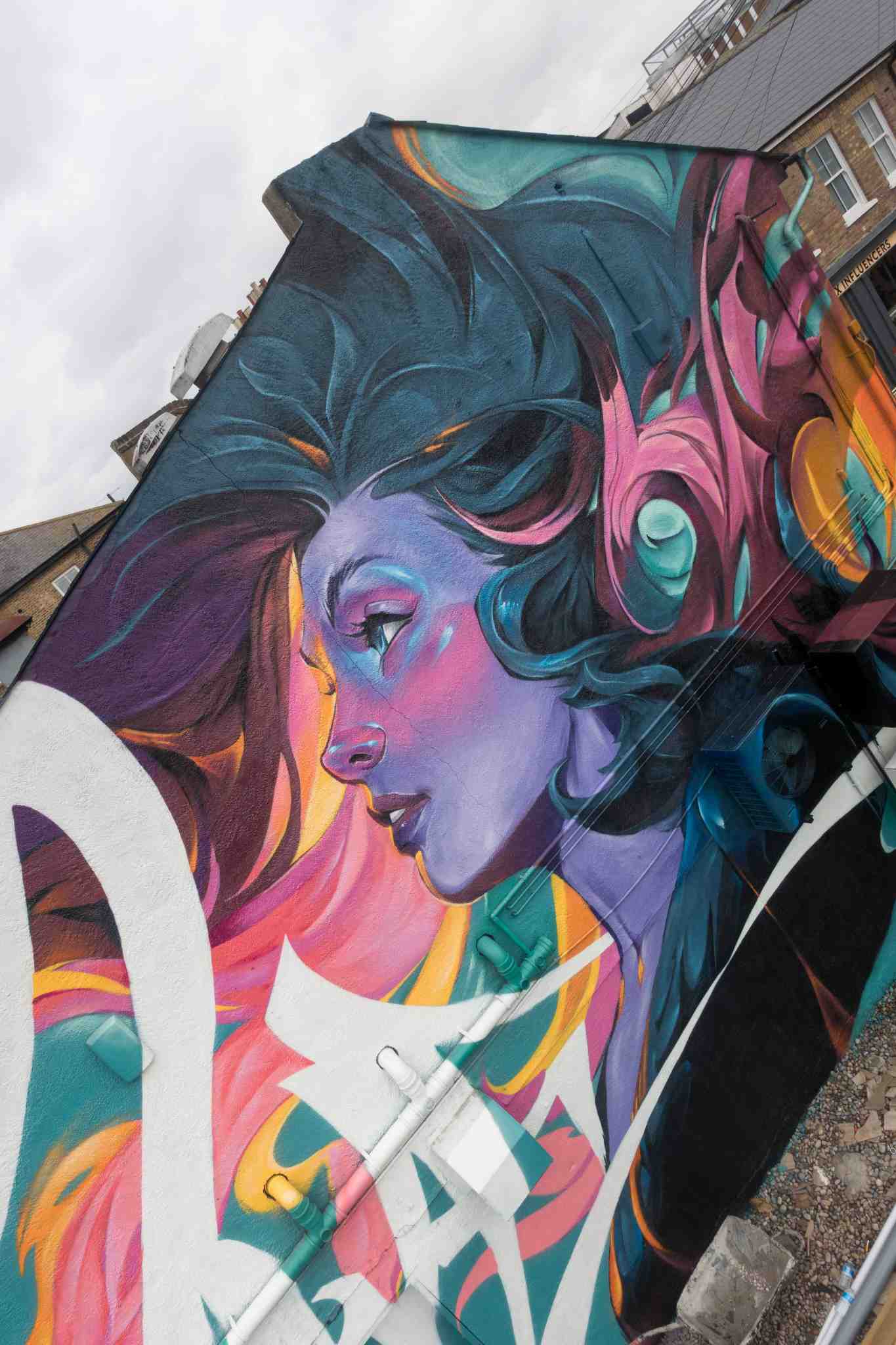 Intervención mural de gran formato en Southend (Londres) para un festival internacional de graffiti. Una pieza vibrante y contemporánea que transforma la fachada lateral de un edificio y dinamiza la calle con color, movimiento y un retrato icónico. Ideal como referencia para ayuntamientos, festivales y marcas que buscan impacto visual, activación urbana y comunicación positiva en espacios públicos.