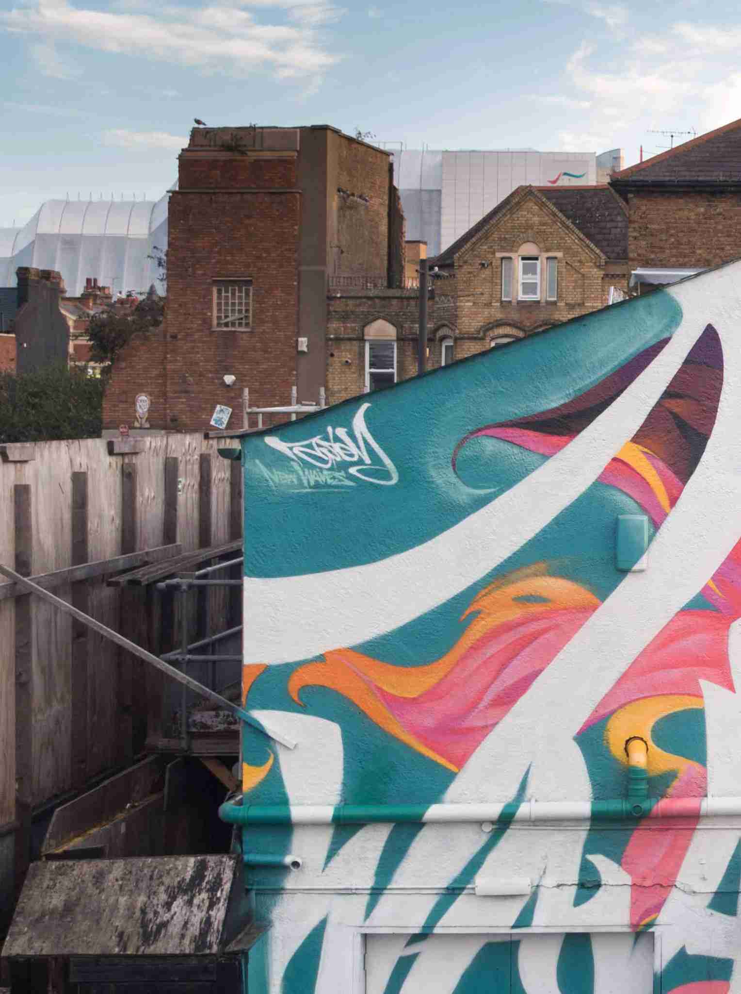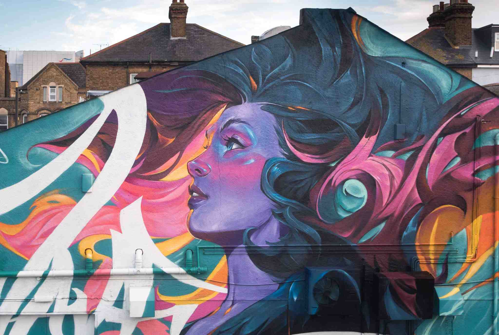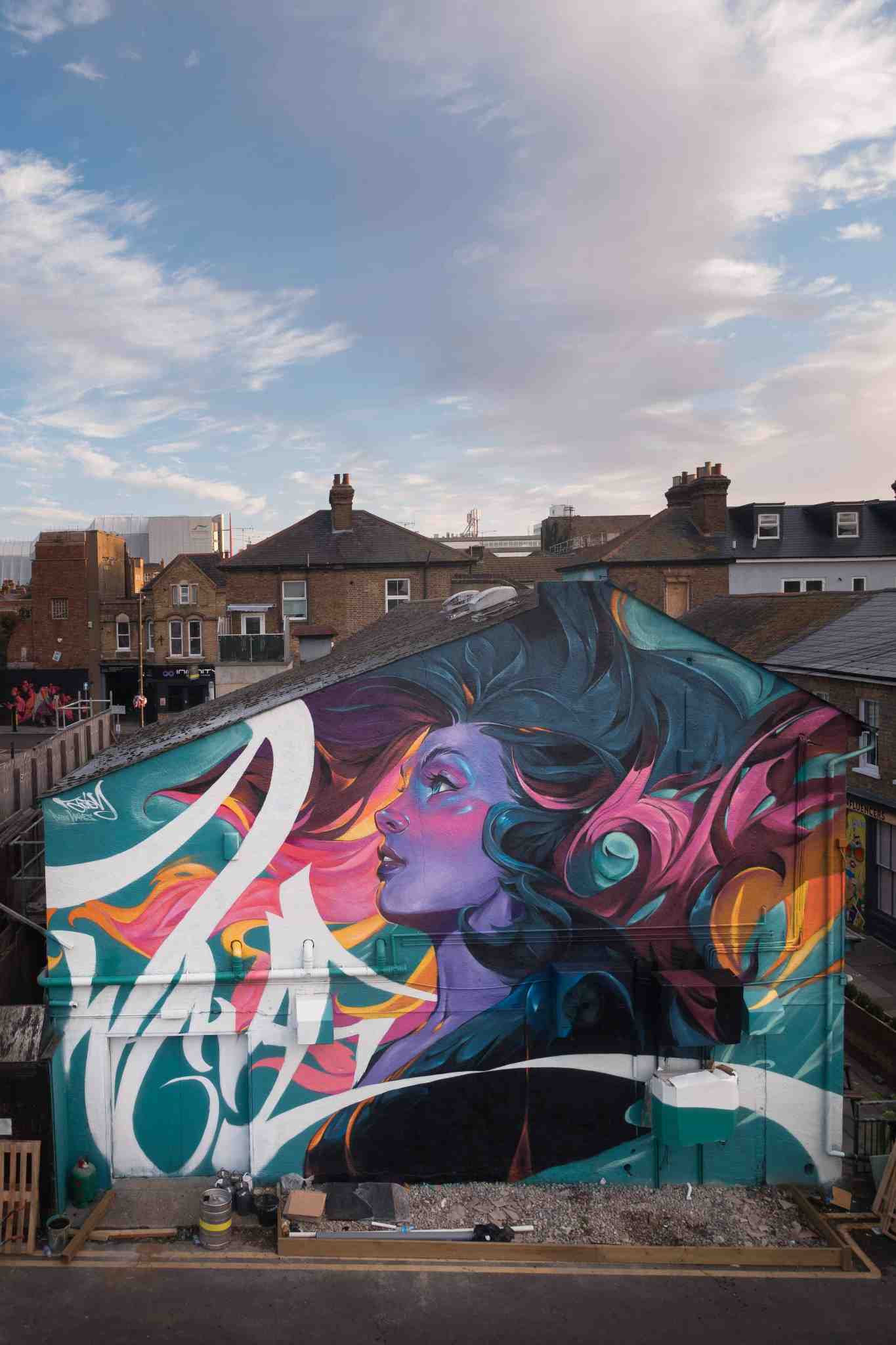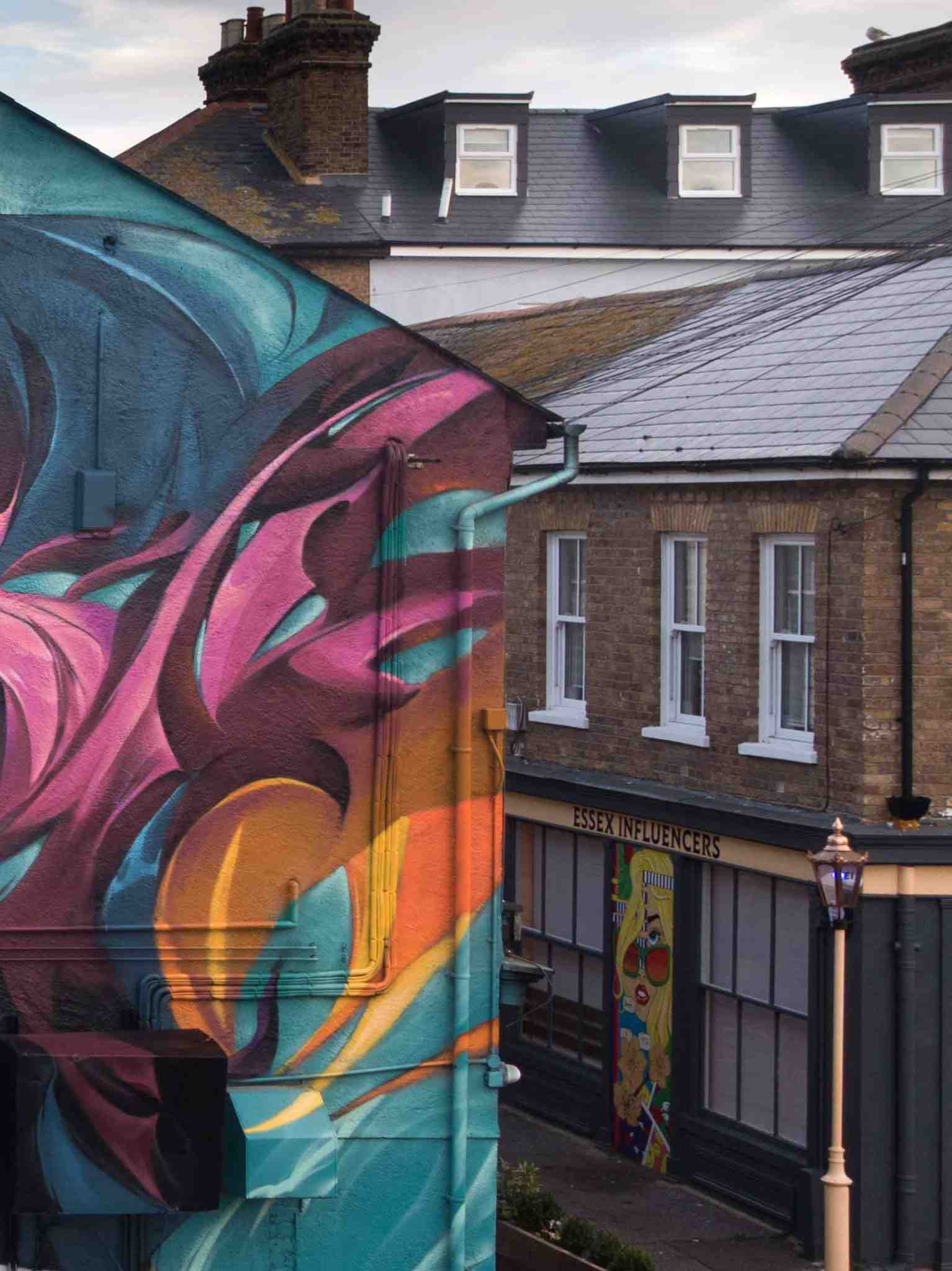 Intervención mural de gran formato en Southend (Londres) para un festival internacional de graffiti. Una pieza vibrante y contemporánea que transforma la fachada lateral de un edificio y dinamiza la calle con color, movimiento y un retrato icónico. Ideal como referencia para ayuntamientos, festivales y marcas que buscan impacto visual, activación urbana y comunicación positiva en espacios públicos.